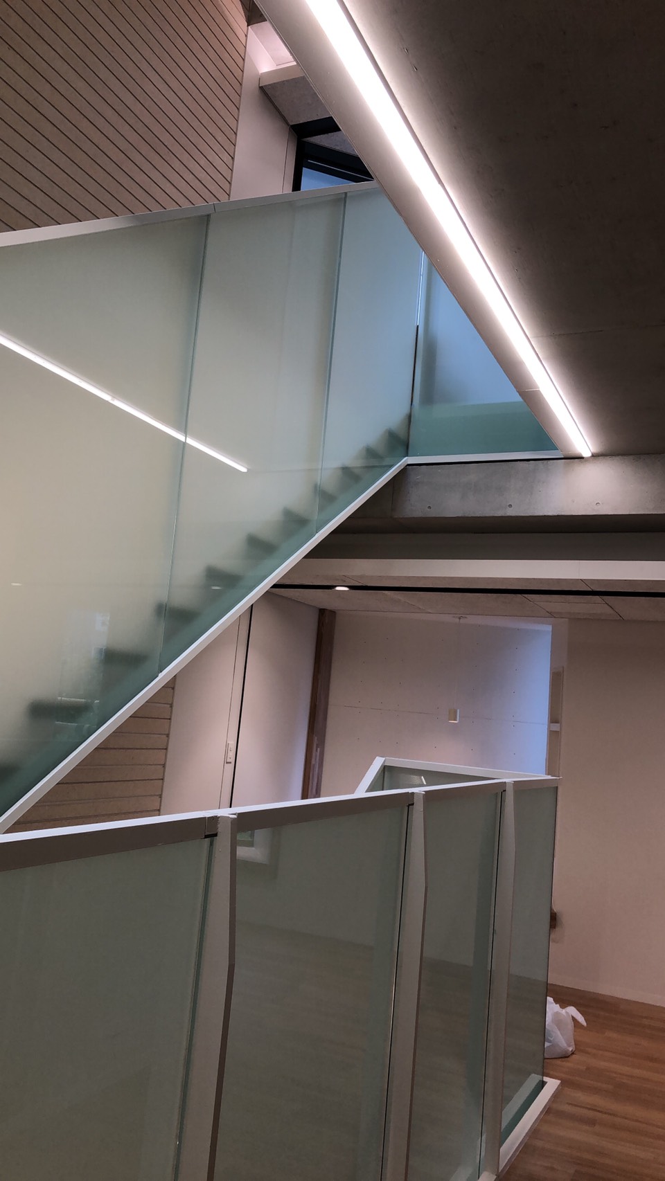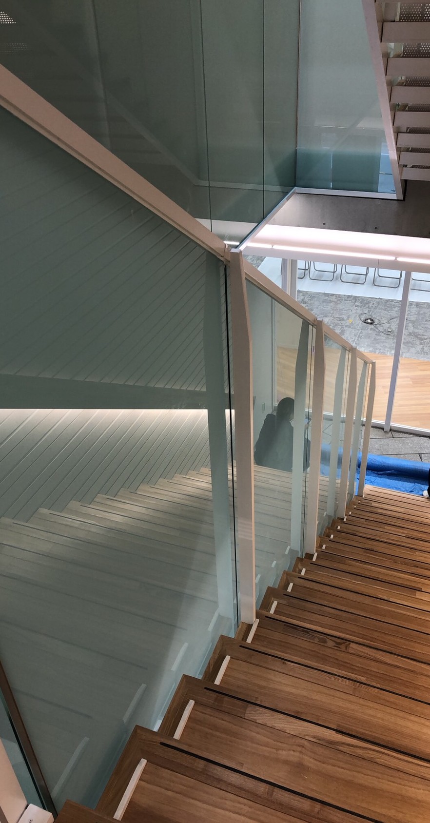 ガラス手摺枠を自社工場で製作、施工までを一貫して行いました。