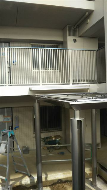 埼玉県 Sマンション 新築工事での庇設置施工例です。